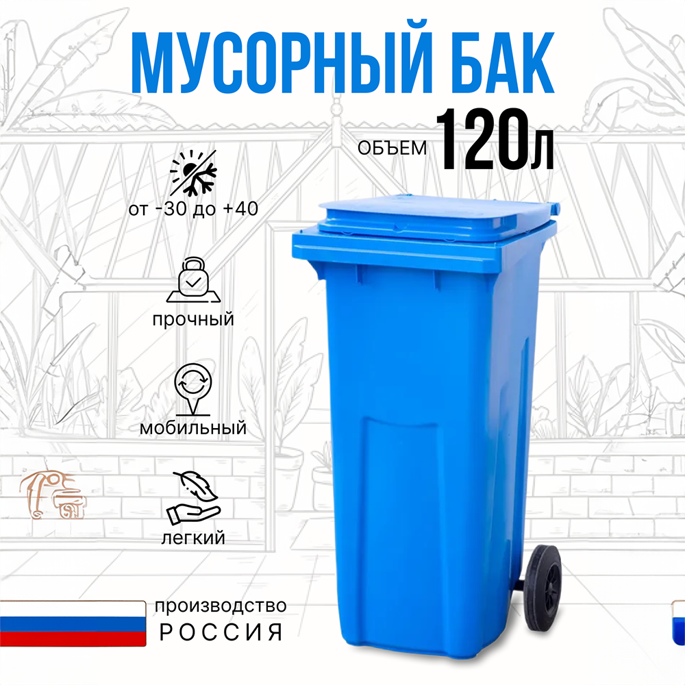 Бак мусорный на колесах с крышкой 120 л, цвет синий