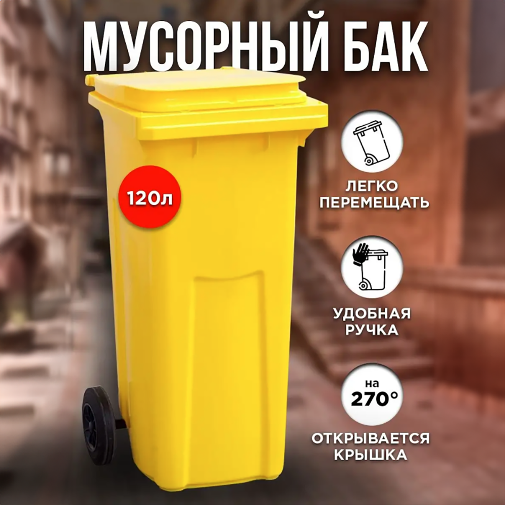 Бак мусорный на колесах с крышкой 120 л, цвет желтый
