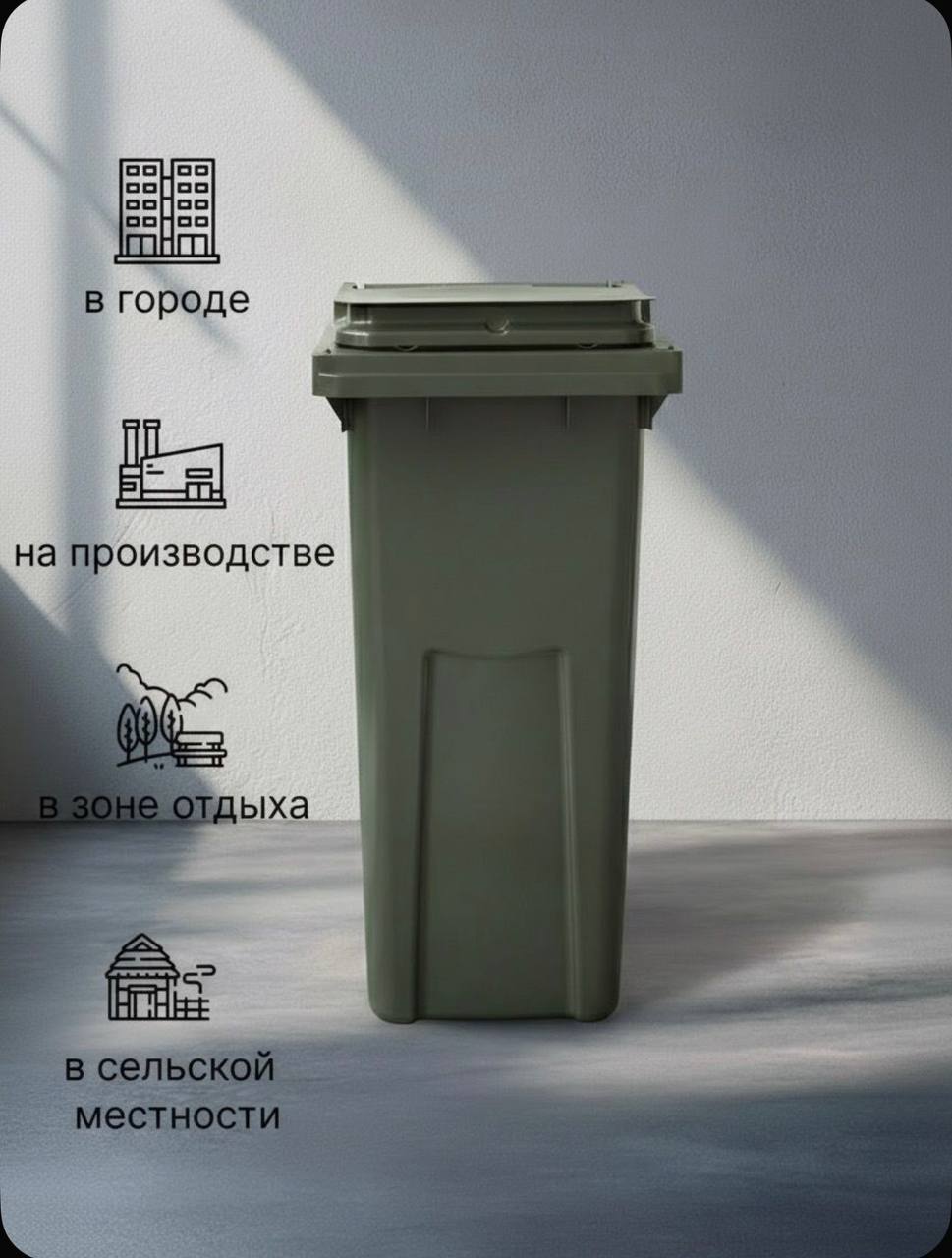 Мусорный бак уличный 120 л без колёс оливковый
