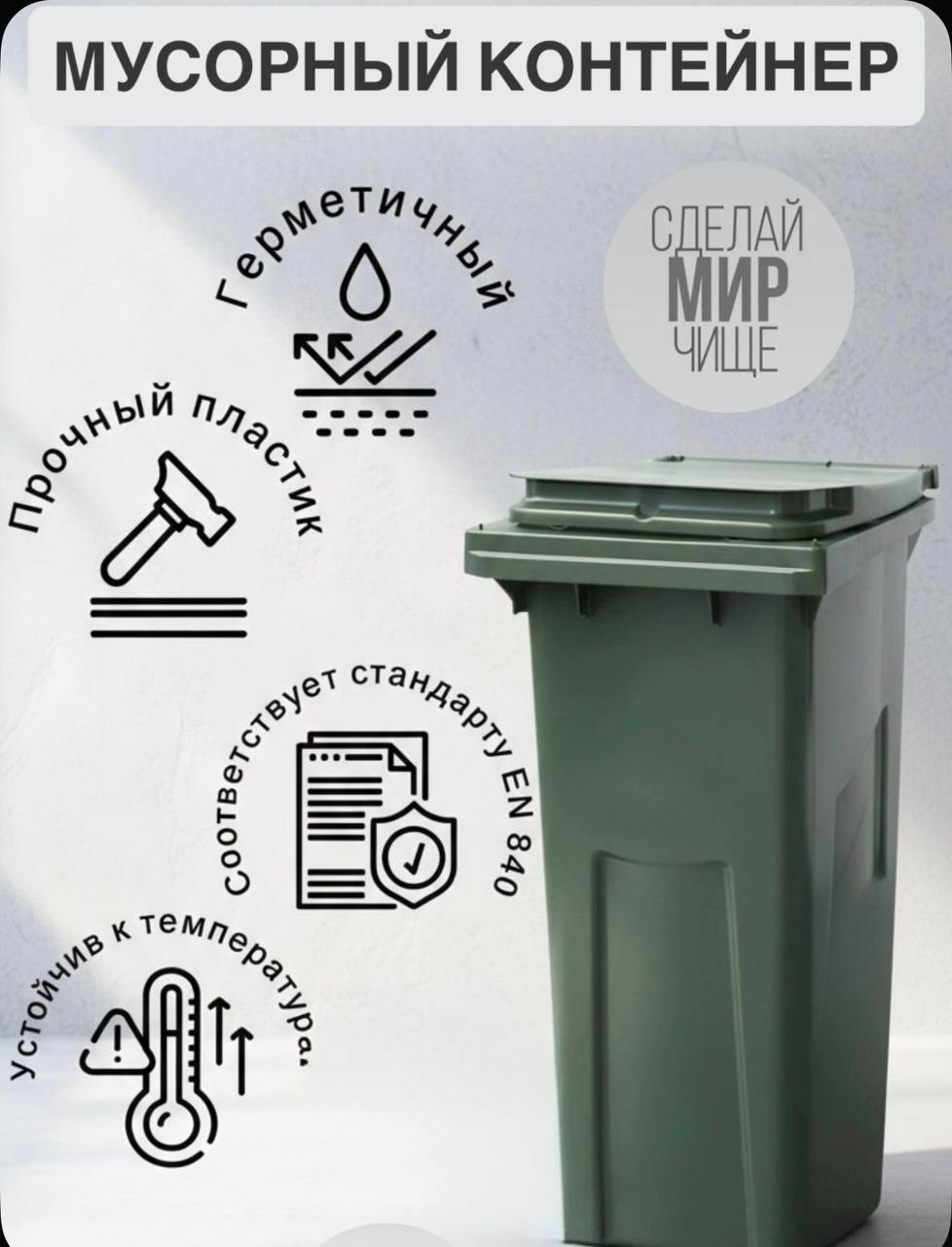 Мусорный бак объемом 120 литров, с крышкой, на колесах.