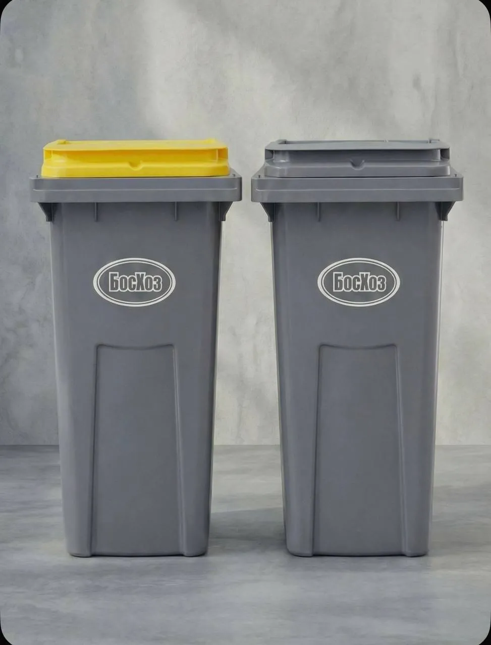Мусорный бак объемом 120 литров, с крышкой, на колесах.