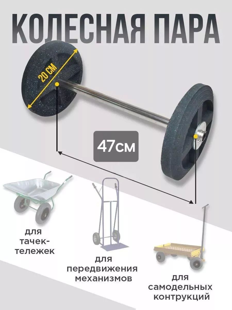Колеса на оси для мусорного бака, тачки, тележки диаметром 20 см, цвет графитная крошка
