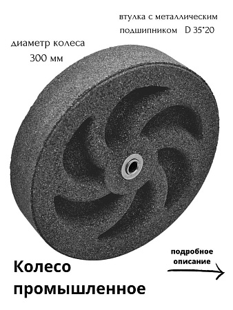 Колеса ЭВА-ЭКО предназначены для использования в ручных тележках, садово-строительных тачках, мусорных баках и несамоходном передвижном оборудовании. Они цельнолитые и изготавливаются методом горячего прессования из экологически чистого сырья. Эти колеса отличаются высокой износостойкостью благодаря твердости материала, которая составляет 77 единиц по шкале Shore-A. Они устойчивы к различным погодным условиям, включая жару, мороз, влажность, а также воздействию химически активных веществ. Колеса отлично подходят для работы на грубых и рыхлых поверхностях, а также на скользких покрытиях. Основные характеристики: внешний диаметр — 300 мм, ширина профиля — 65 мм, вес — 3,5 кг, рабочая нагрузка — до 600 кг. В ассортименте представлены модели с металлической втулкой и металлическим подшипником размером 35x20, 35x16 и 35x12 мм.