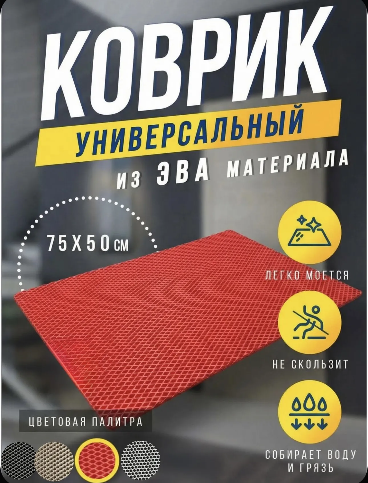 EVA коврик 75×50 см — прочный, влагостойкий, универсальный