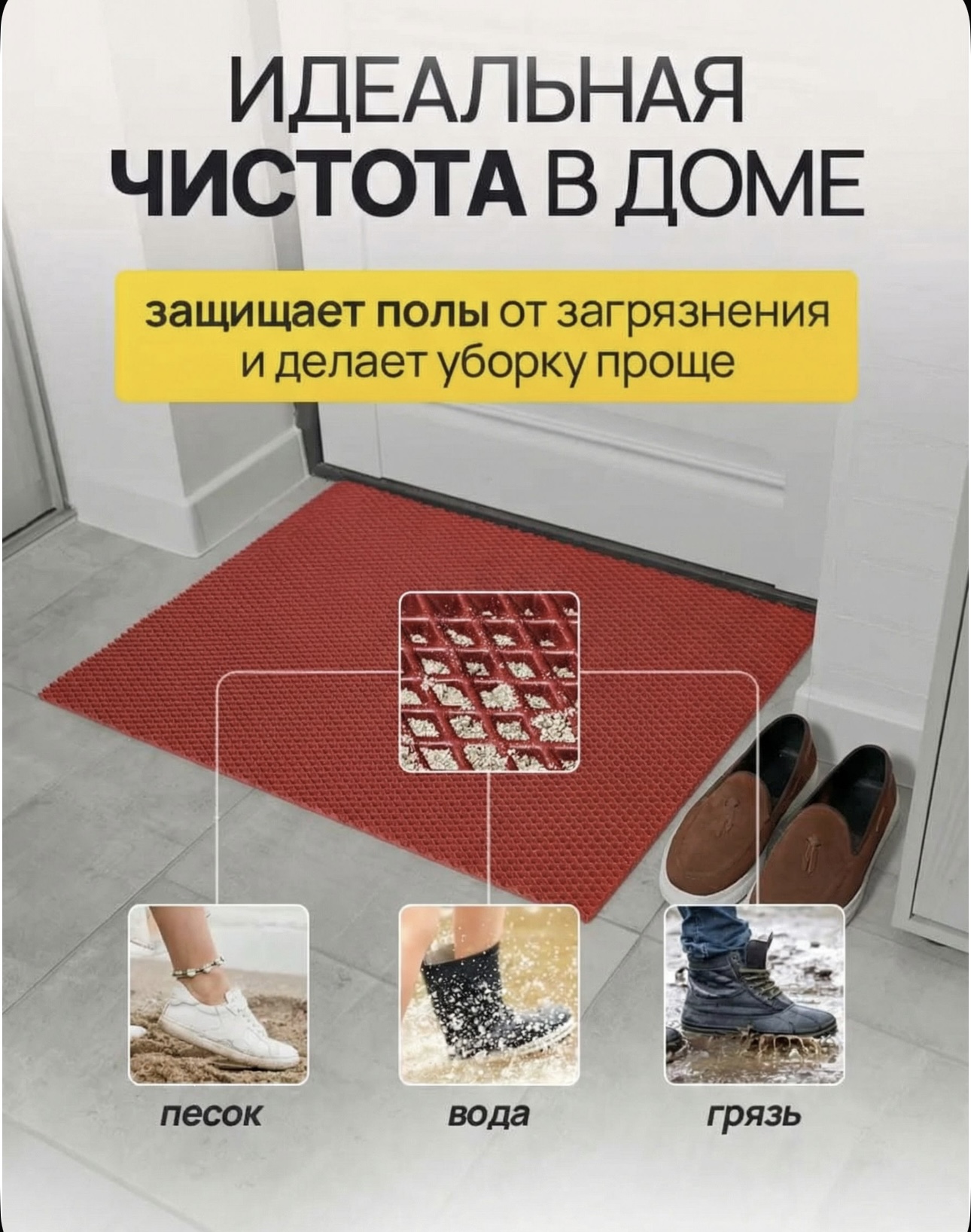 Практичный EVA-коврик размером 75×50 см — надежное решение для дома, автомобиля и дачи. Изготовлен из современного EVA-материала, который сочетает легкость, прочность и отличную защиту от влаги и грязи.