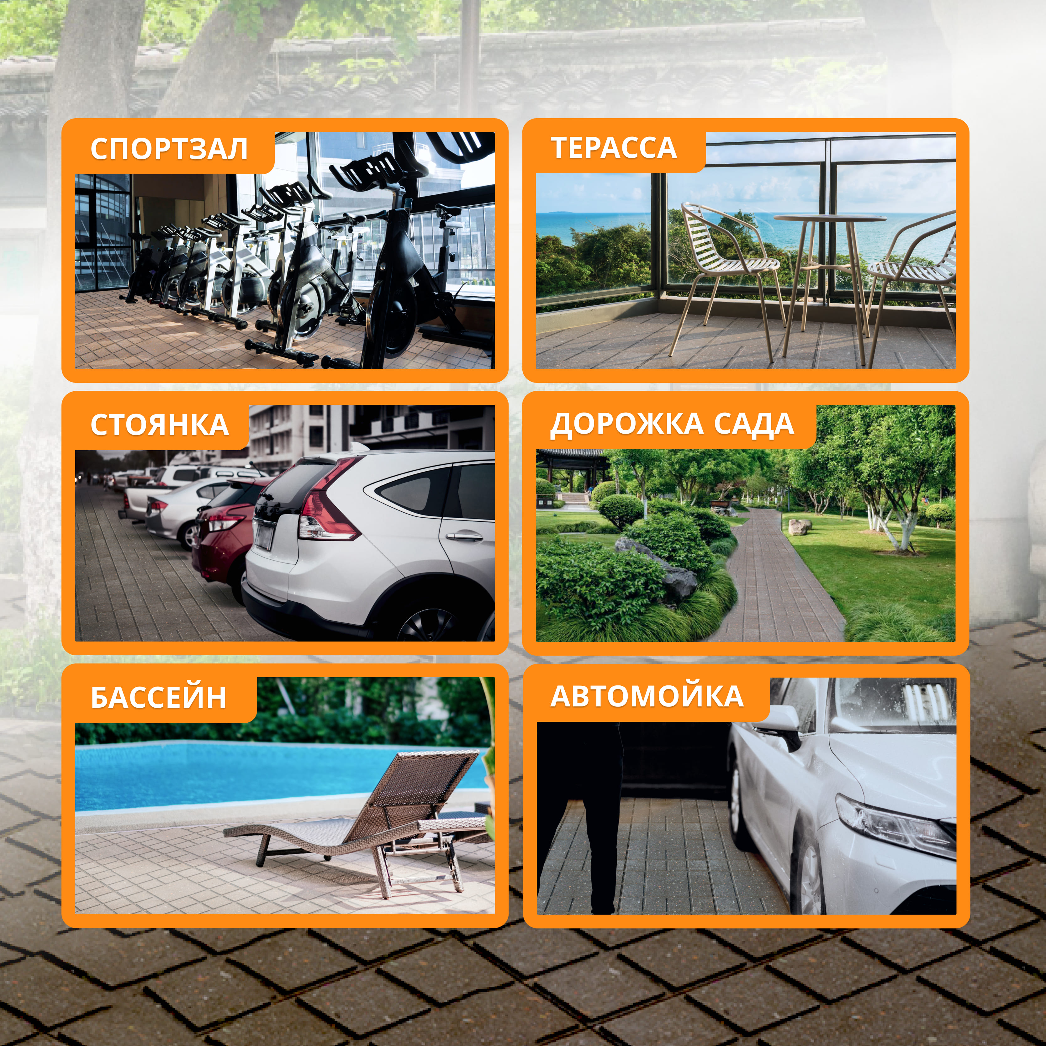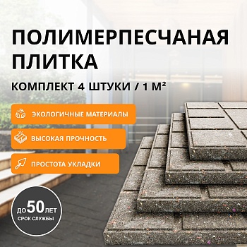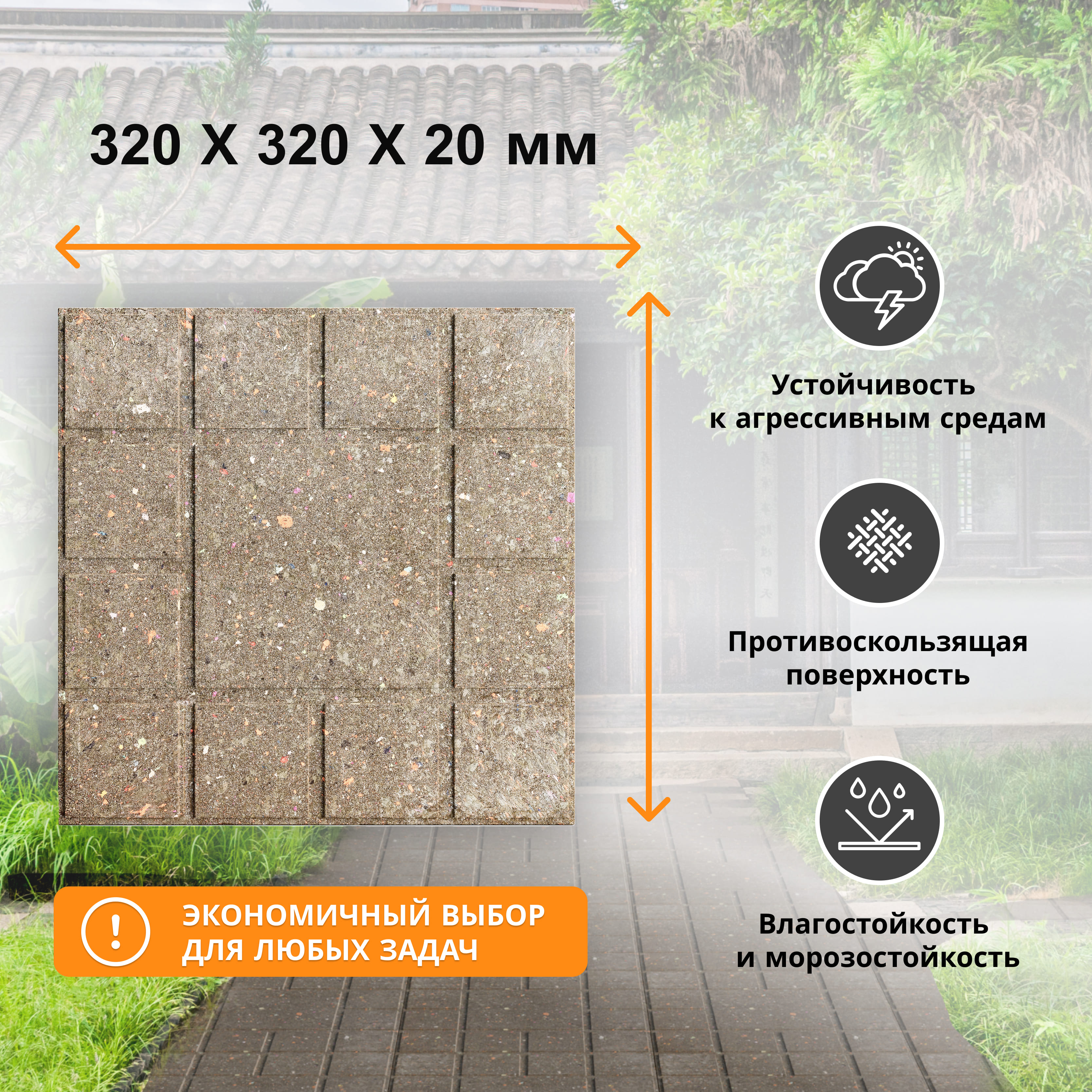 Плитка тротуарная из полимерного композита. Крепкий и долговечный. Износостойкий готовый строительный материал. Часто используется для уличных дорожек. Плитка, аналог садовой брусчатки. Дачный вариант обустройства тропинок между грядок и в теплице. Напольное покрытие имеет шероховатую поверхность, не скользит и не крошится. Наледь и снег легко счищать. Идеально для крыльца и ступенек дома. Для пола террасы и зоны барбекю. Выдерживает высокие нагрузки и не боится агрессивной среды. Подходит для автостоянок, гаража и двора. Не сломается под тяжестью автомобиля и снегоуборочной техники. Влагозащитная. Из плиты выкладывают площадки под бассейн и отмостки. Заменит бетон, камень, цемент и резину. Поможет Вам с ландшафтным дизайном. Плитка тротуарная от компании производителя. Набор 4 шт.