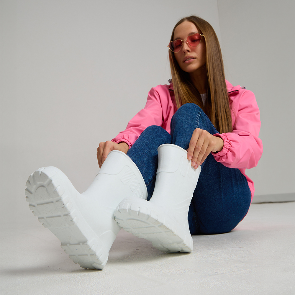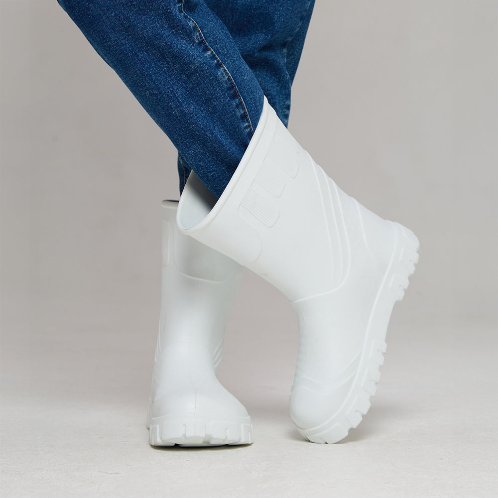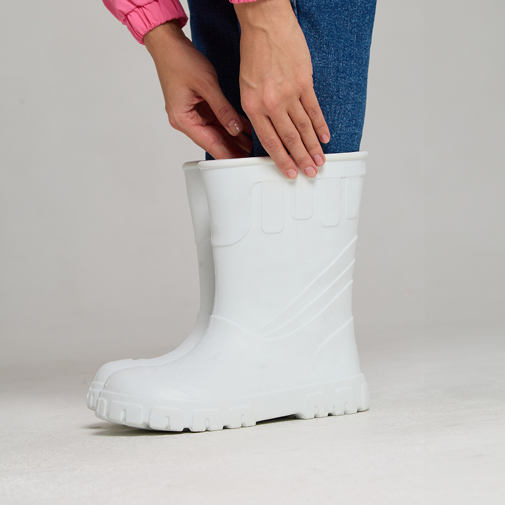 Резиновые сапожки из материал ЭВА, не промокнут, сохранят ноги в тепле и сухими. Обувь на каждый день в демисезонное время позволит с комфортом гулять по улицам, выгулять собаку, а также сходить в лес за грибами и поработать в саду и огороде. С высоким подъемом и широким голенищем обуваться легко даже зимой. Будьте уверены, вы не замерзните и не поскользнётесь. У сапог противоскользящая резиновая подошва, что гарантирует безопасность на любых поверхностях. Модные сапоги без каблука подойдут под любой стиль и понравятся взрослым и девочкам подросткам.