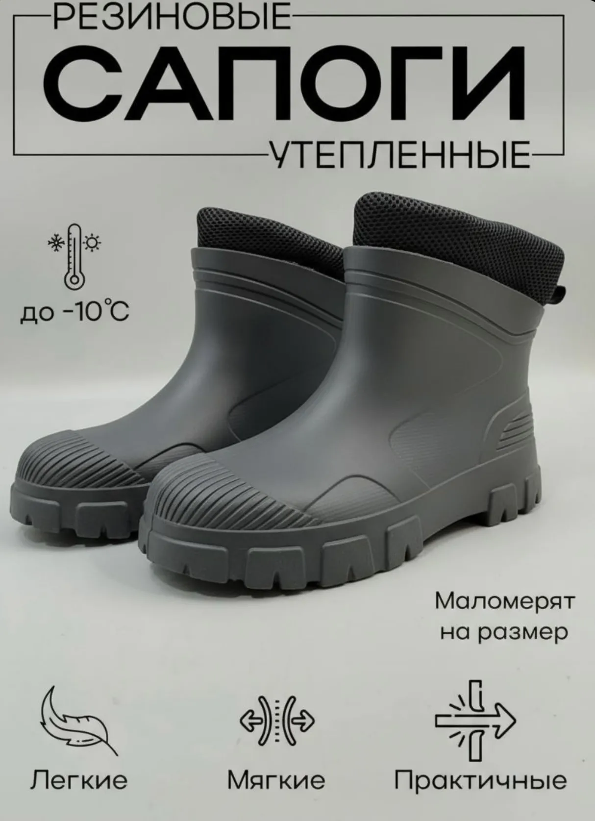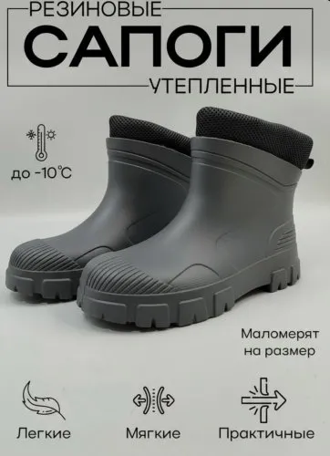 Сапоги резиновые утеплённые полусапожки, цвет серый - Обувь ЭВА для мужчин, женщин и детей от производителя Колесник