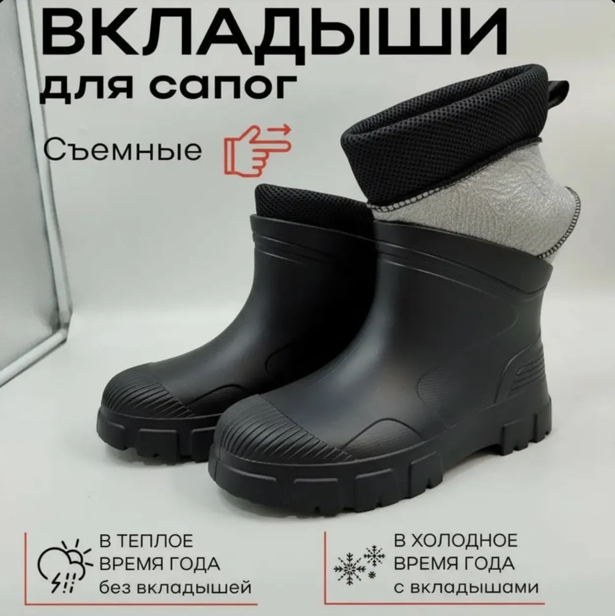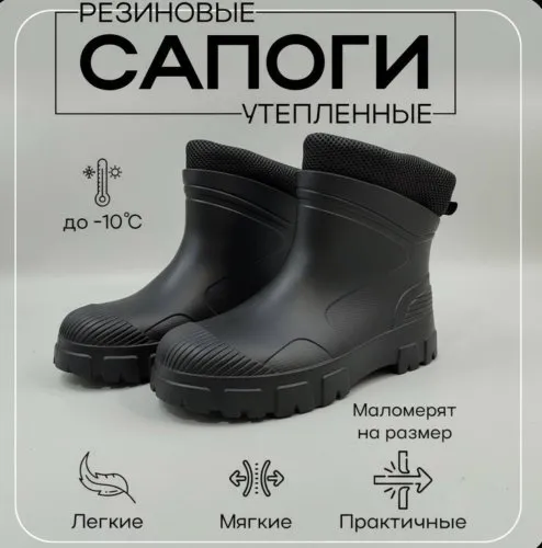 Сапоги женские с вкладышами утепленные ЭВА Колесник – легкая и удобная обувь с минимальным декором! Полусапожки идеально подходят как для сада и огорода, походов в лес, так и для городских прогулок! Сапоги короткие изготовлены из высокотехнологичного материала EVA – полимер на основе каучука, что дает такую прочность и мягкость одновременно, сохраняет тепло. Легкая и практичная модель резиновой обуви. Цельнолитые полуботинки – мягкие и гибкие, не боятся механических повреждений, при этом хорошо амортизируют, не трескаются на сгибах. Протектор подошвы с рисунком гарантирует устойчивость на любой поверхности – земля, песок, мокрый асфальт и плитка. Сапоги резиновые идеально подходят для любого сезона! В качестве спец обуви для профессионалов – медработников, поваров, строителей и т.п. Резиновые сапоги женские модные – прекрасный подарок маме, сестре, бабушке, подруге.