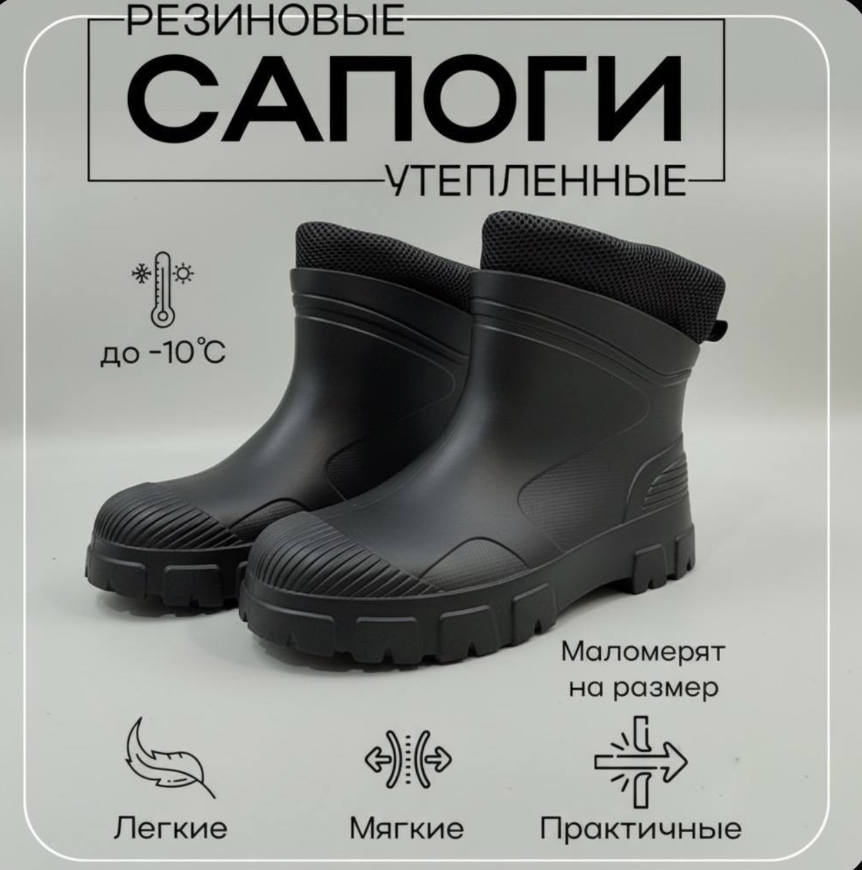 Сапоги резиновые утеплённые полусапожки, цвет чёрный (36-37)