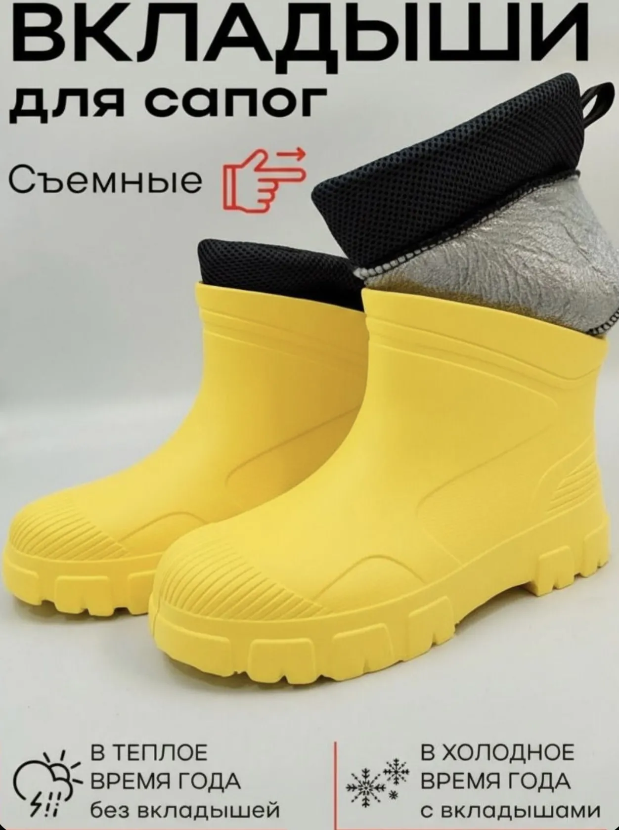 Сапоги резиновые утеплённые полусапожки, цвет жёлтый