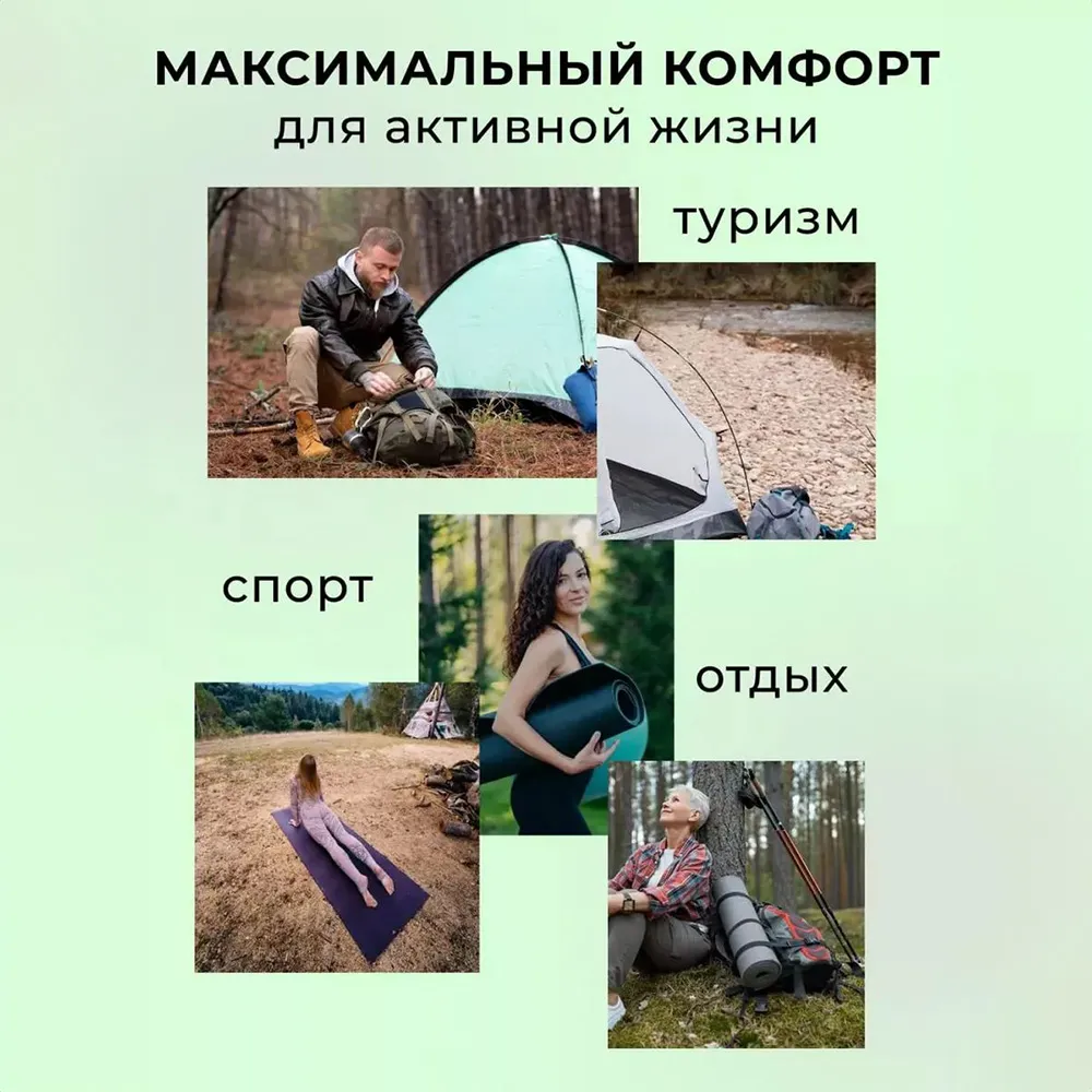 Туристический коврик - идеальное решение для комфортного отдыха на природе! Размер 110х60 см. Этот матрас-поджопник из уникального материала ЭВА, позволяет легко и быстро разместить его под спальные мешки. Благодаря своей компактности и легкости, он легко помещается в рюкзак и станет незаменимым аксессуаром для туристической палатки. Каремат, изготовленный из специального вспененного материала ЭВА (пенка), обеспечивает комфорт и тепло даже на промерзшей земле, выдерживает широкий диапазон температур от -50 до +30 градусов. Вы также можете использовать его в качестве удобной сидушки на пикнике или для комфортного отдыха на рыбалке. Надежное снаряжение - не просто коврик, это настоящий спутник любого туриста! Он обладает водонепроницаемыми свойствами, что позволяет использовать его даже в плохих погодных условиях. Благодаря универсальному дизайну и практичности, этот спортивный мат станет вашей надежной защитой от влаги, грязи и неровностей поверхности природы. Приобретая походный коврик Привал, вы получаете непревзойденный комфорт в любой ситуации. Независимо от того, занимаетесь ли вы туризмом, рыбалкой, походами или просто хотите насладиться отдыхом на природе, этот коврик станет идеальным спутником для вашего отдыха. Удобный, надежный и простой в использовании универсальный коврик ПВХ Привал поможет вам создать идеальную атмосферу для вашего отдыха и позволит вам насладиться каждым моментом в природе! Отличный товар для пикника, кемпинга и отдыха!